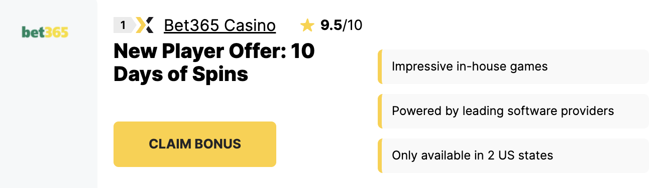 Different story. Online casino laws are much tighter than sports betting. As of this review, you can play Bet365’s online casino only in: