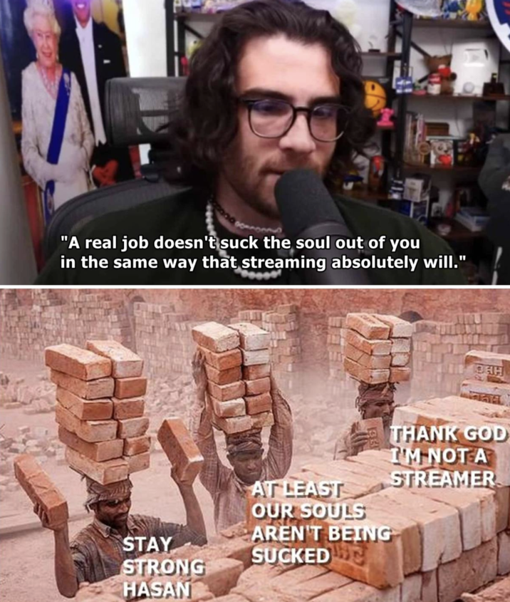 Finally, even his stream cadence becomes fodder. The habitual “top of the hour ad break” reminder, delivered with clockwork timing, gets clipped and memed as a parody of streamer capitalism. In short, every spike—verbal, emotional, or visual—gets harvested, reframed, and fed back to the algorithm as “Hasan fails,” ensuring his worst minutes live far longer than the streams themselves.